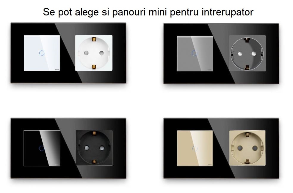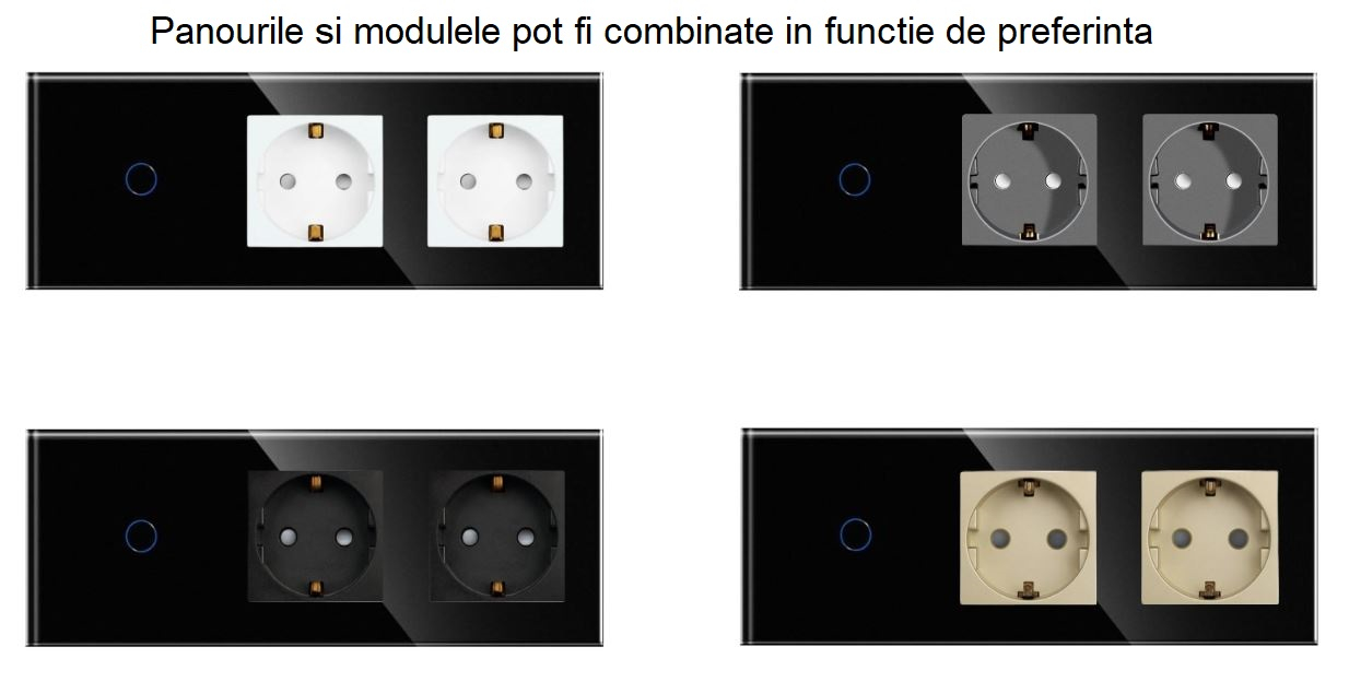 Intrerupator tactil + priza (4 doze) configurabil (simple, cap scar/cruce, prize cu wifi, etc),