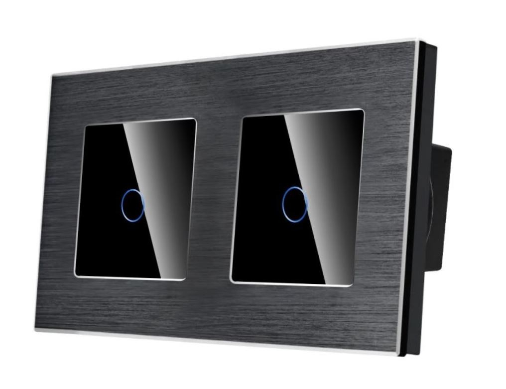 Intrerupator tactil 2 doze configurabil cu rama de aluminiu (simplu, dublu, triplu, cap scara, dimabil, etc.)