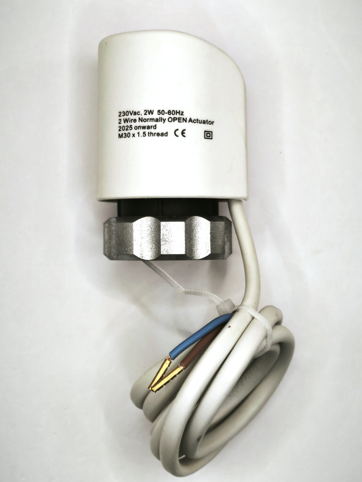 Actuatorul (normal inchis) reprezinta mecanismul care actioneaza sistemul de distributie a agentului termic din instalatiile de incalzire prin pardoseala. Actuatorul primeste comenzi termoelectrice de la
