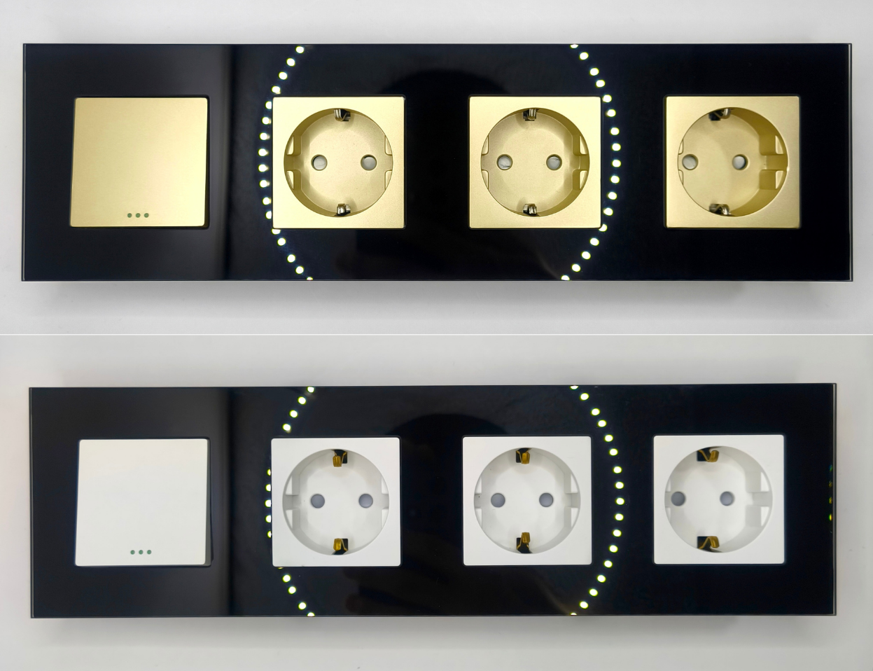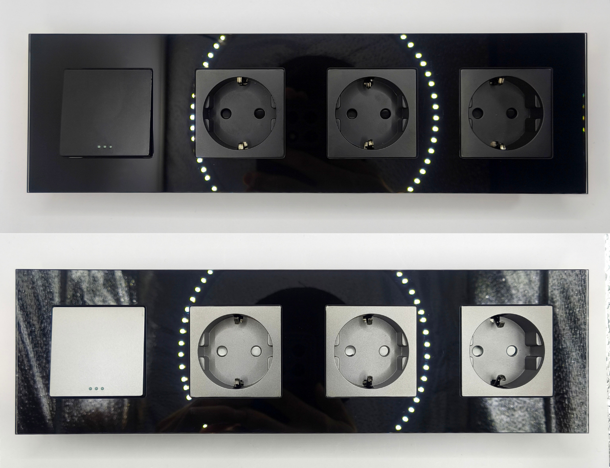 Intrerupatoare si prize care se potrivesc pentru 4 doze clasice inseriate. Aveti posibilitatea de a va configura singur intrerupatorul dupa bunul plac si dupa necesitate. Alegeti modului pe care il doriti pentru doza din stanga iar apoi pentru doza din dreapta. Fotografiile sunt doar ca model de prezentare, nu corespund cu alegerile facute de catre dumneavoastra.