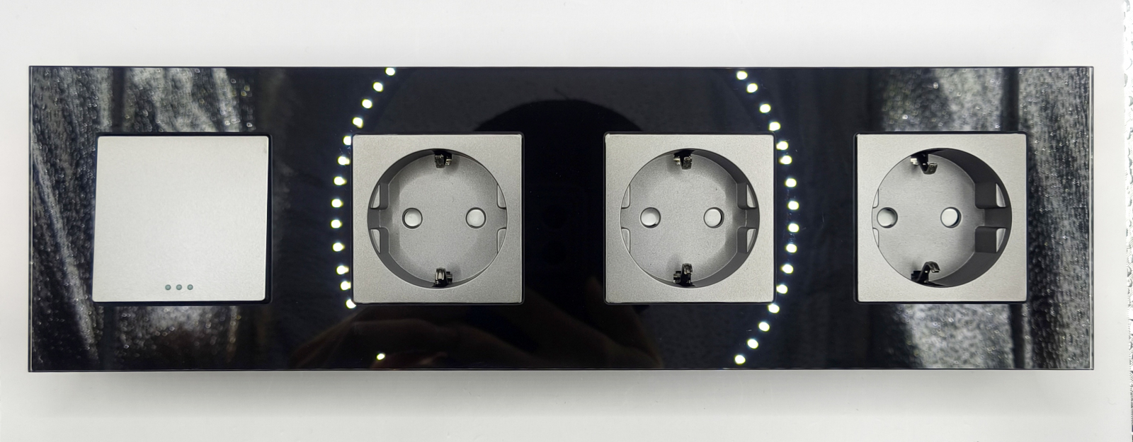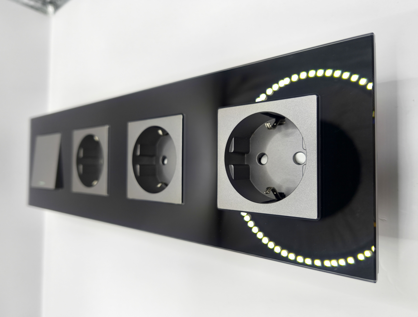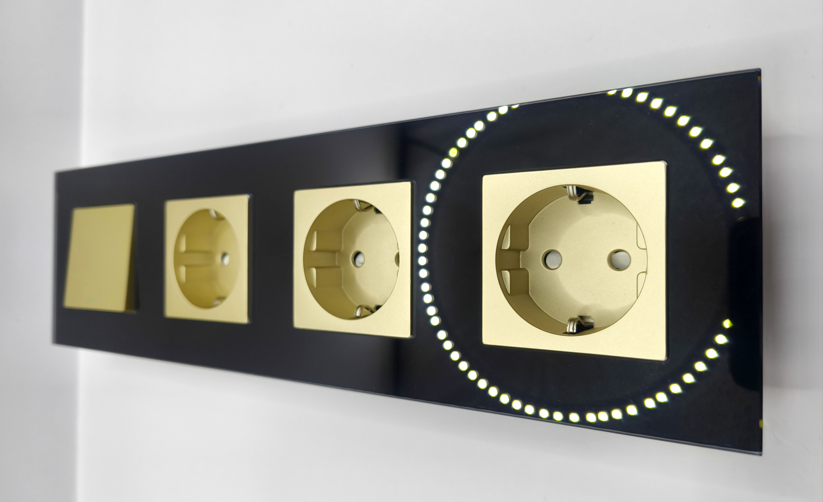 Intrerupator mecanic + priza 4 doze configurabil cu rama de sticla (simple, cap scar/cruce, prize cu wifi, etc),