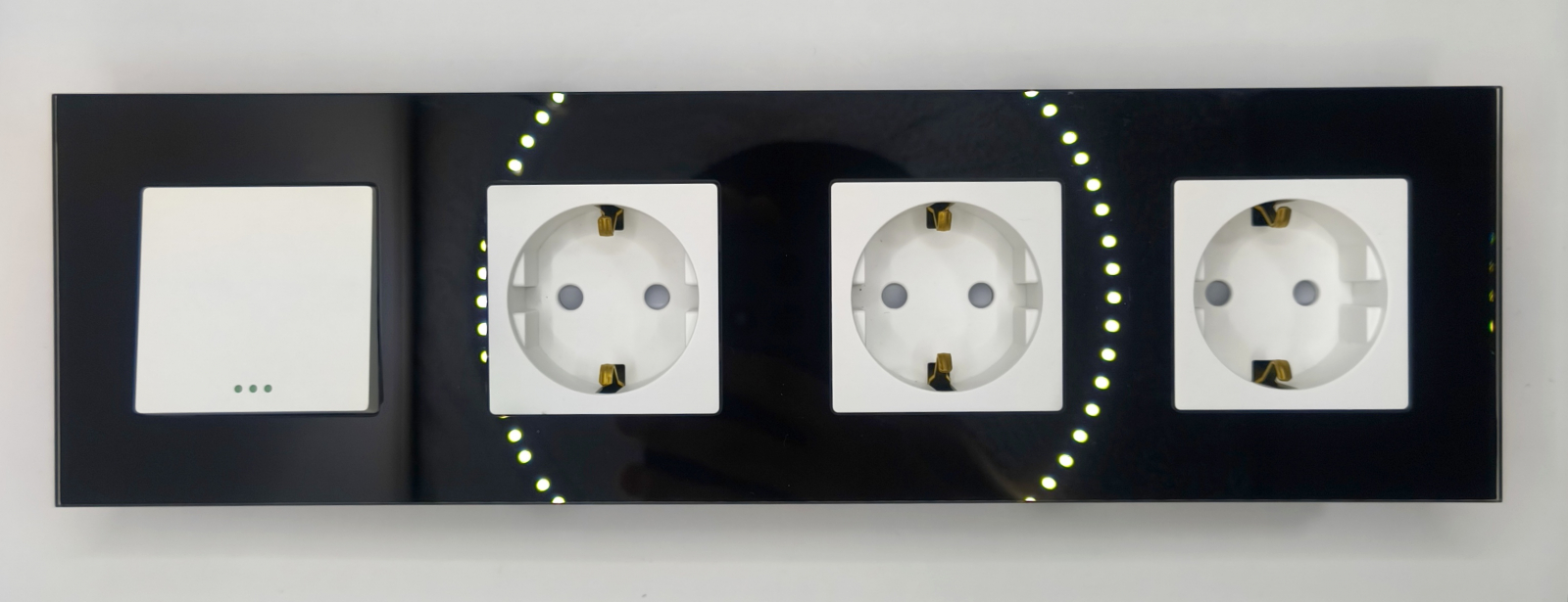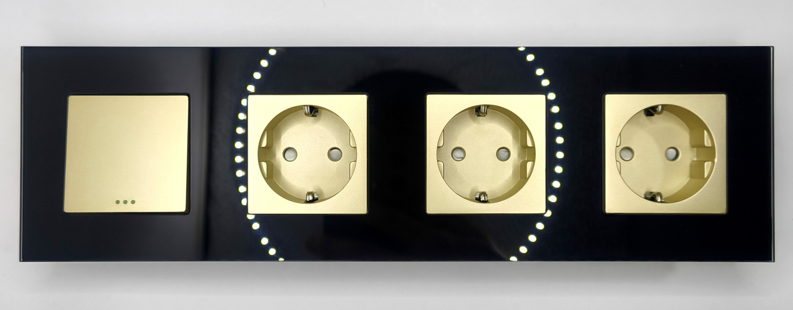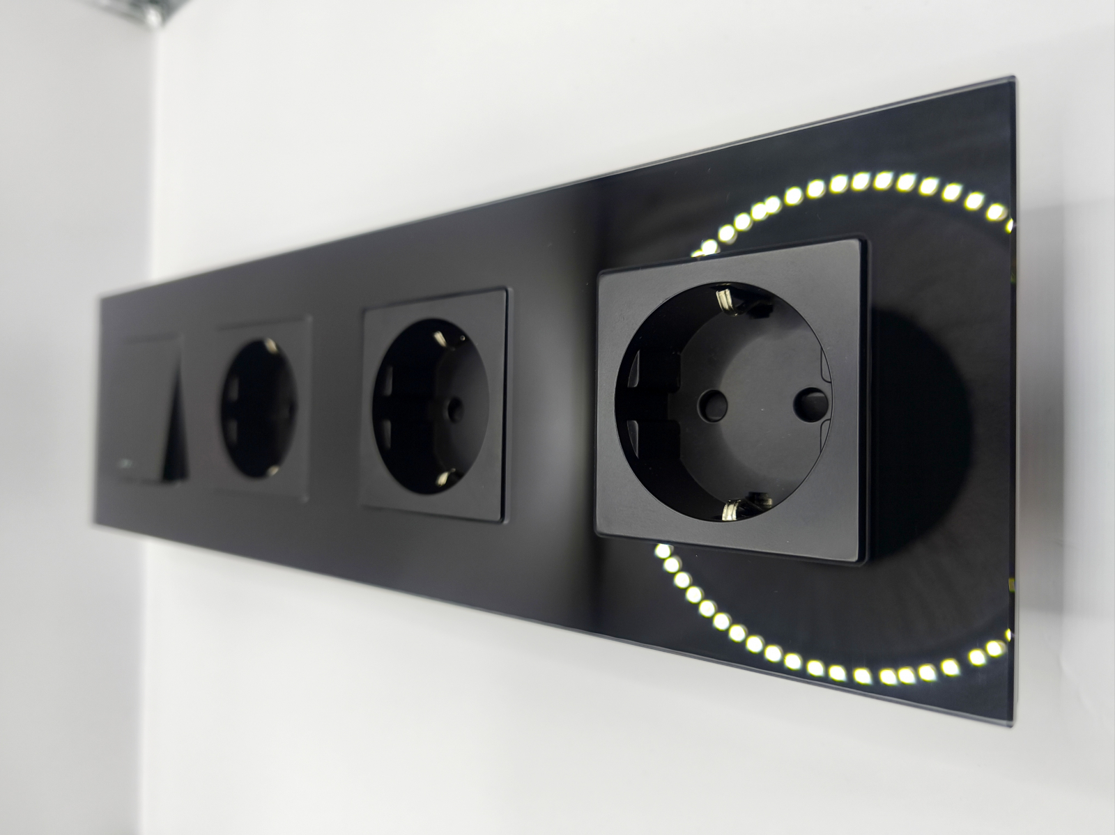 Intrerupator mecanic + priza 4 doze configurabil cu rama de sticla (simple, cap scar/cruce, prize cu wifi, etc),