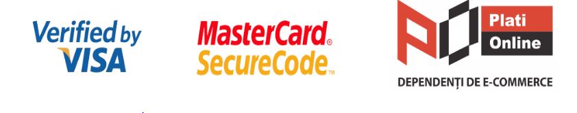 Se poate efectua plata online cu cardul personal sau al firmei dumneavoastra, in conditii de siguranta deplina. Cardurile acceptate la plata sunt cele emise sub siglele VISA (Classic si Electron) si MASTERCARD (inclusiv Maestro, daca au cod CVV2/CVC2).